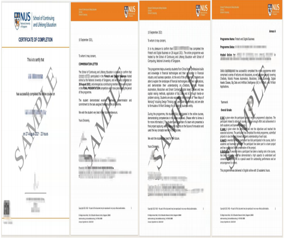 顺利完成项目的学员可获得:新国大主办学院颁发的结业证书、官方成绩测评报告