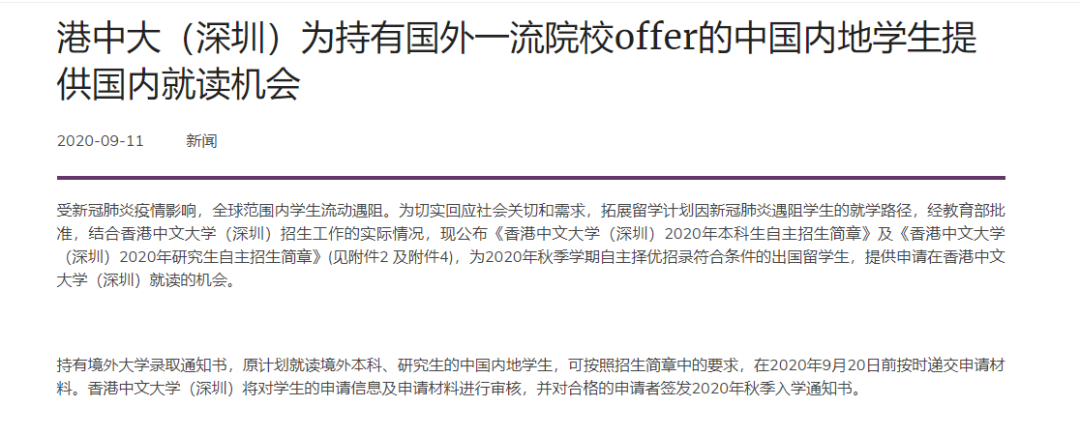 意思就是:已经拿到海外院校本科录取通知书的学生,如果因为各种原因不愿意出境或者无法出境,不想或不能够前往录取你的那个学校就读本科的话,你有机会拿着你的国外大学的offer作为敲门砖,申请中外合作大学。