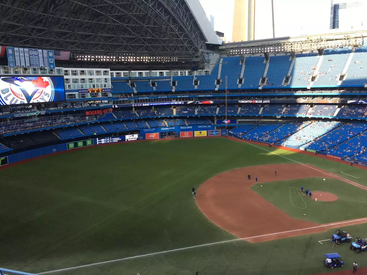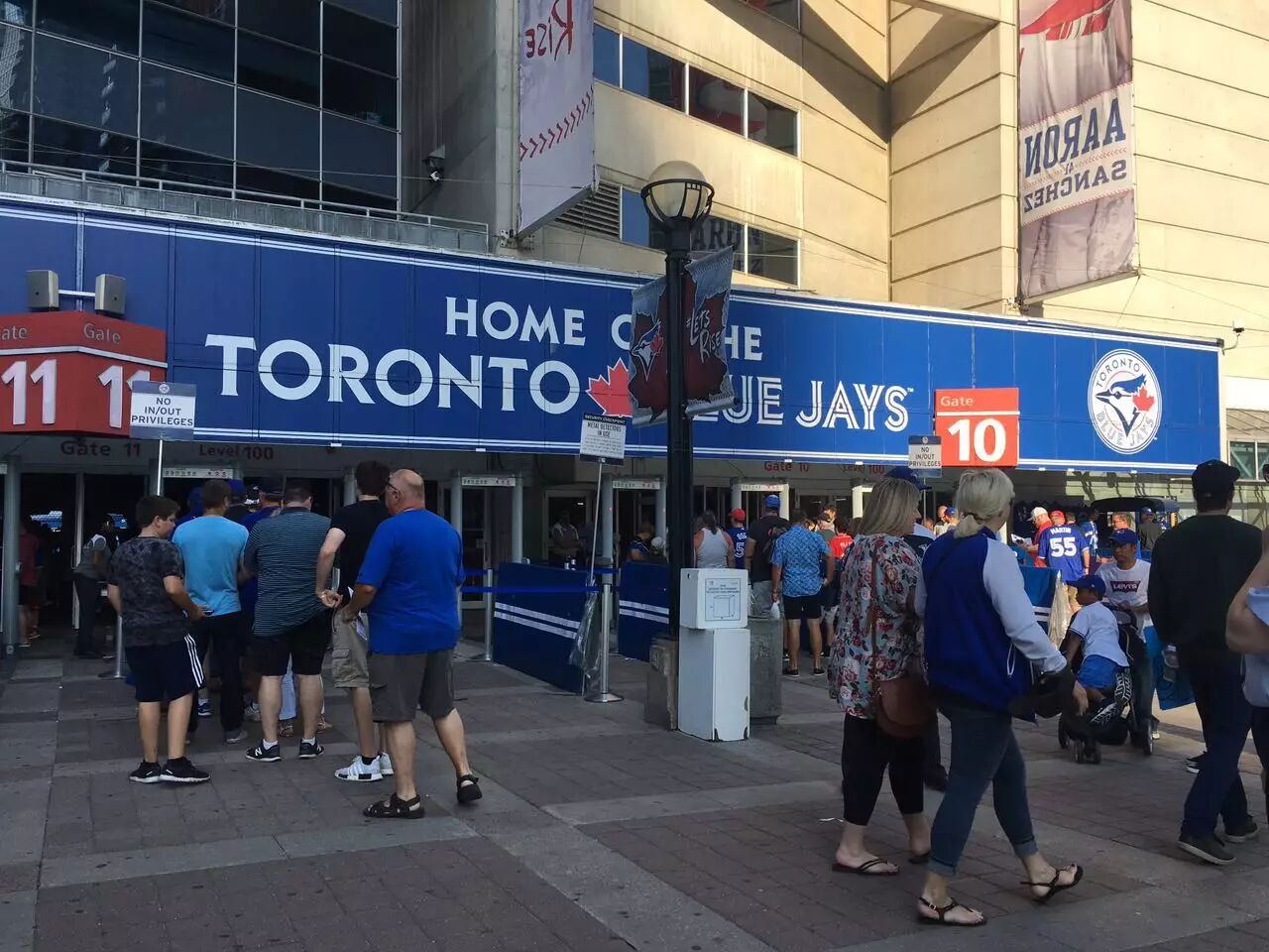 由于Bluejays的比赛在晚上7点,所以我们于5点半吃过晚饭后,就排队进入Roger Center等待比赛的开始了!