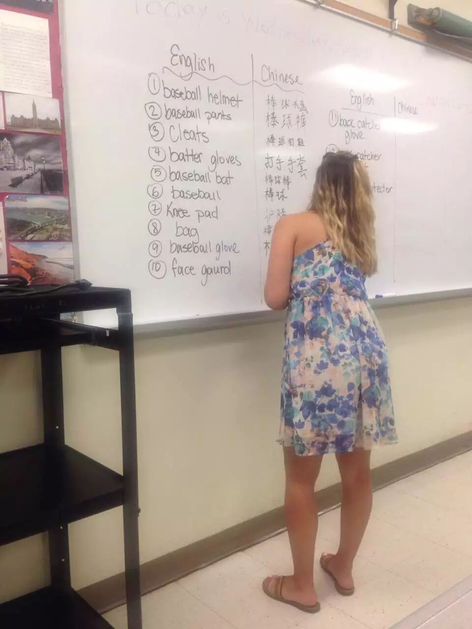在上午的英语课程中,老师非常贴心的给大家讲解了棒球的规则以及棒球中所要用到的语言。