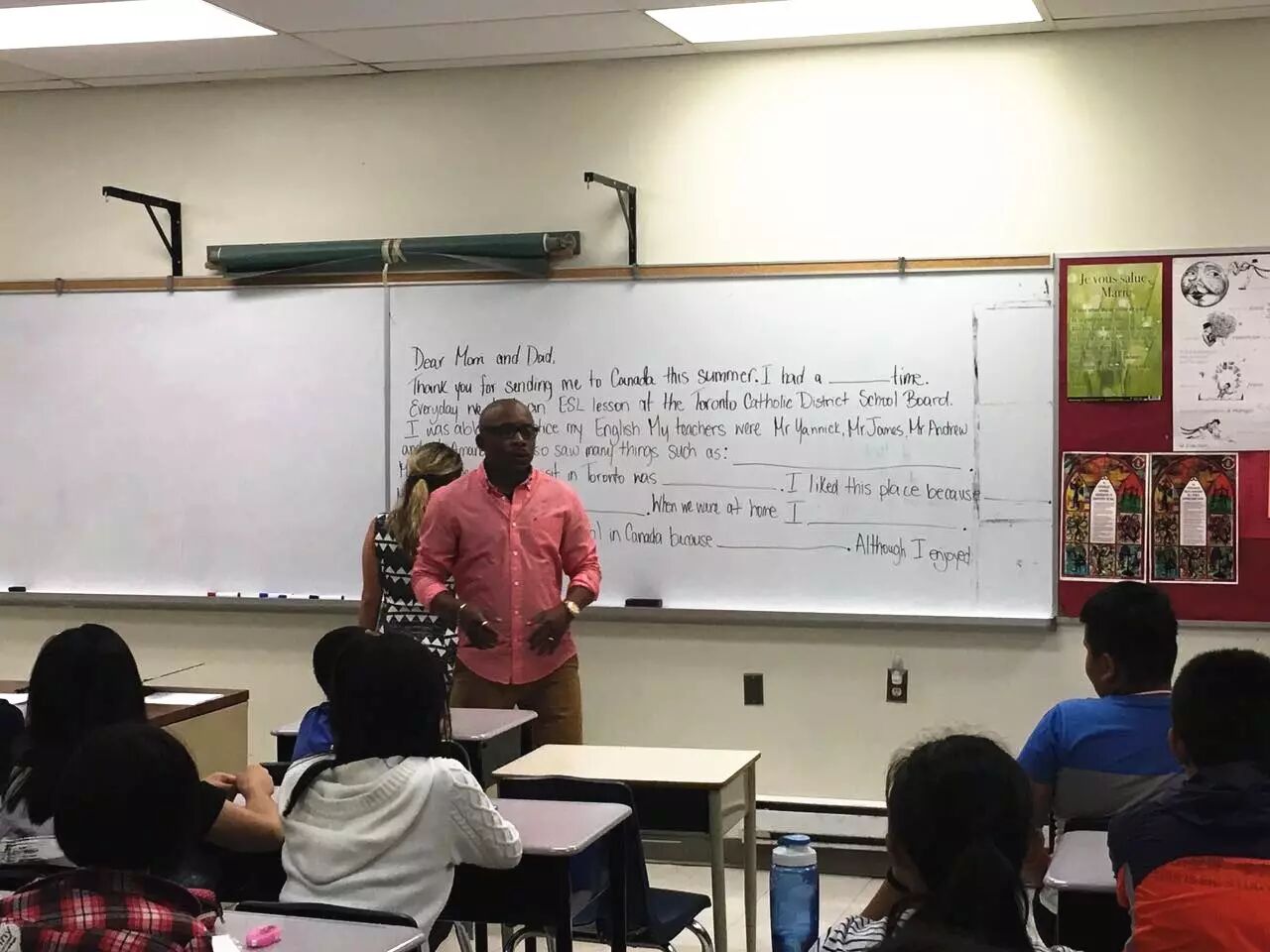 第十九天上午的英文课,老师带领大家把我们来到加拿大之后的每日行程都回顾了一下,并让学生们写了一封给自己爸爸妈妈的信,旨在让学生表达自己对父母的感恩之心。